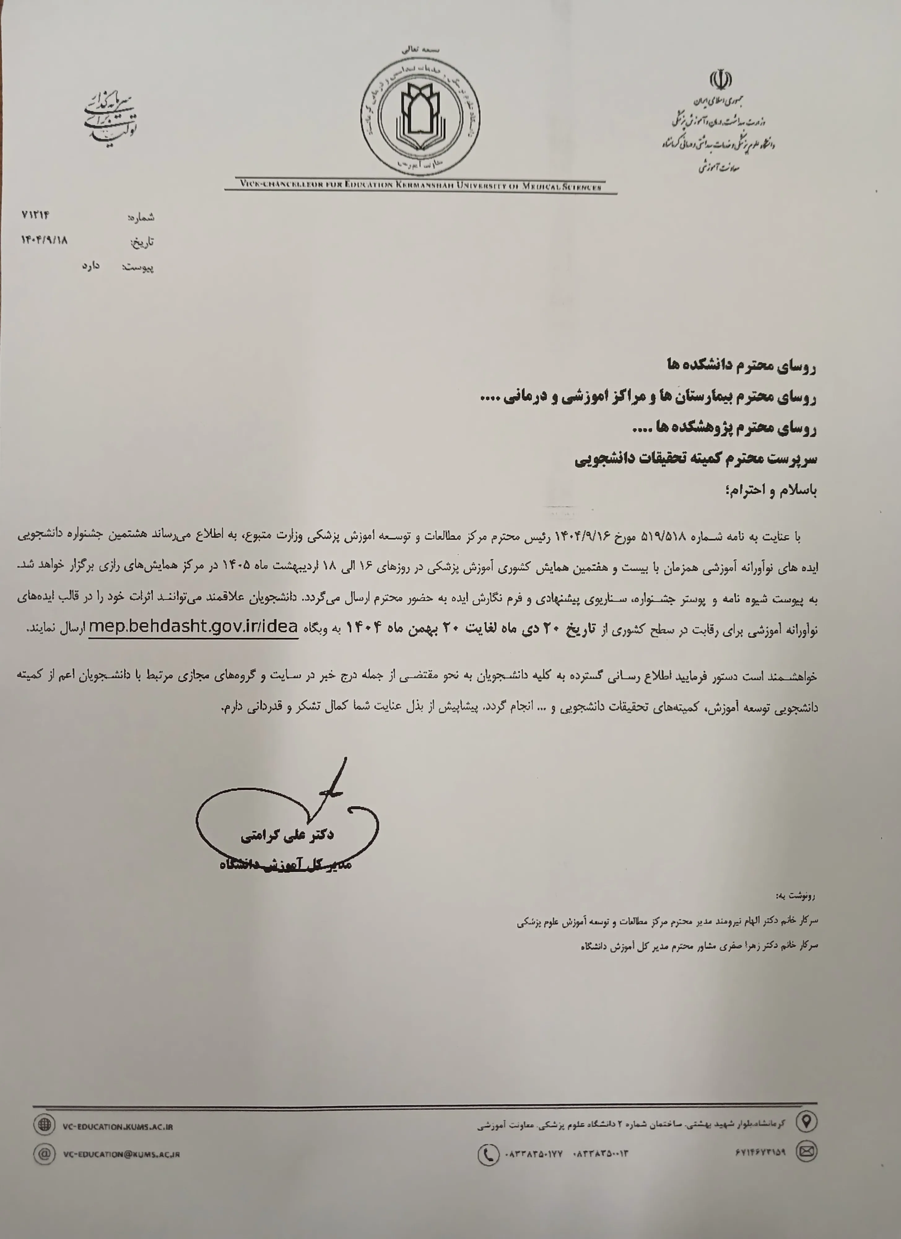 اخبار هشتمین جشنواره دانشجویی ایده های نوآورانه آموزشی ۱۶ تا ۱۸ اردیبهشت ۱۴۰۵ مهلت ارسال آثار ۲۰دی تا ۲۰ بهمن ۱۴۰۴ دو مرحله ای و چالش محور ۱۹ آذر ۱۴۰۴ ۱۱:۲۶ نظرات بینندگان میانگین امتیاز کاربران: 0.0 (0 رای) 12345 امتیاز 12345 برای امتیاز باید عدد وارد کنید نام را وارد کنید ایمیل صحیح نیست ایمیل نمایش داده شود. تعداد کاراکتر باقیمانده: 500 نظر خود را وارد کنید بازخوانی بازخوانی پس از انتشار این نظر، به من اطلاع داده شود. ارسال